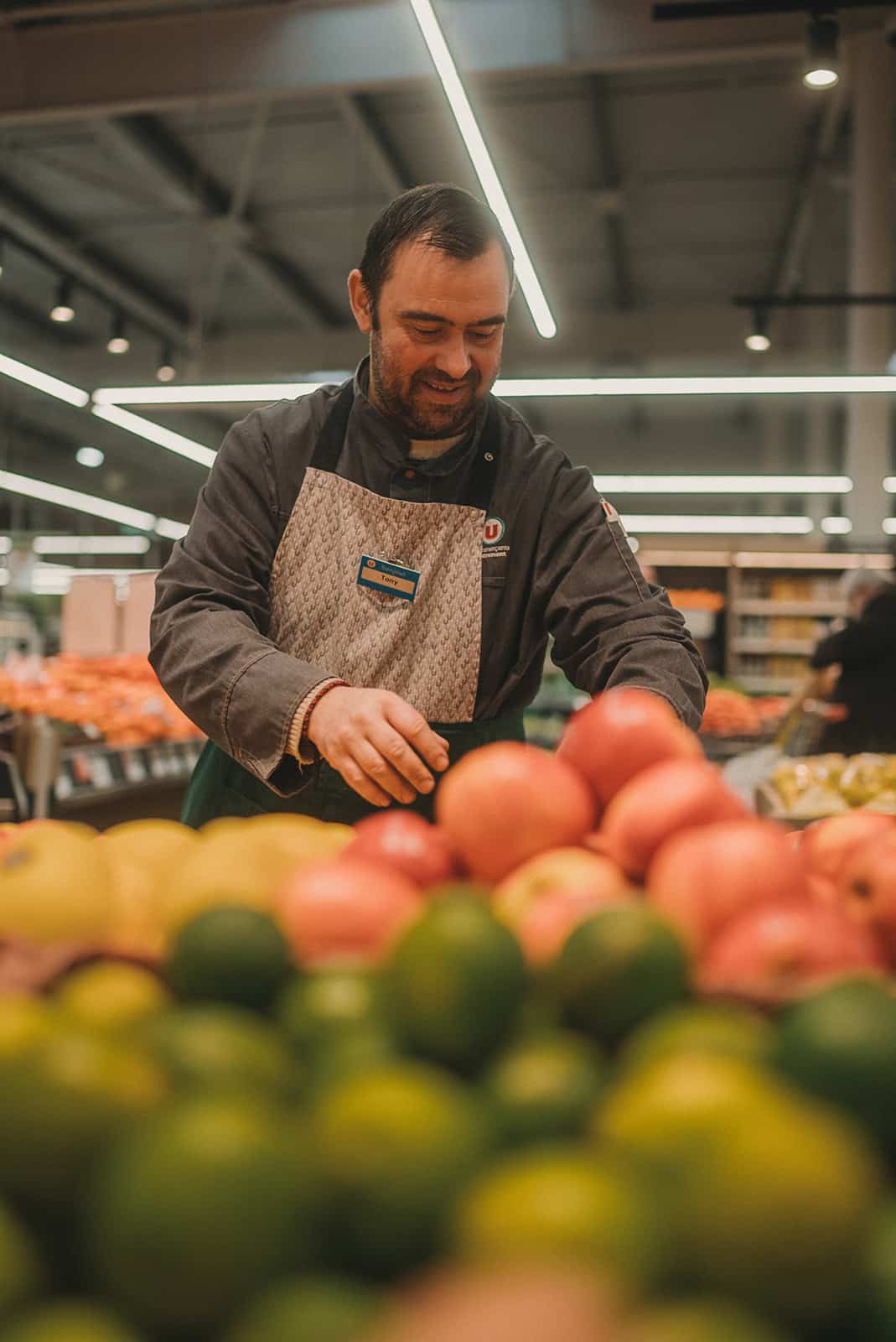 Reportage photo + clip vidéo dynamique réalisés dans un supermarché du Finistère. L’objectif était de réaliser des portraits des collaborateurs au travail, de retranscrire la bonne ambiance et montrer les espaces avec un look moderne à la Netflix.