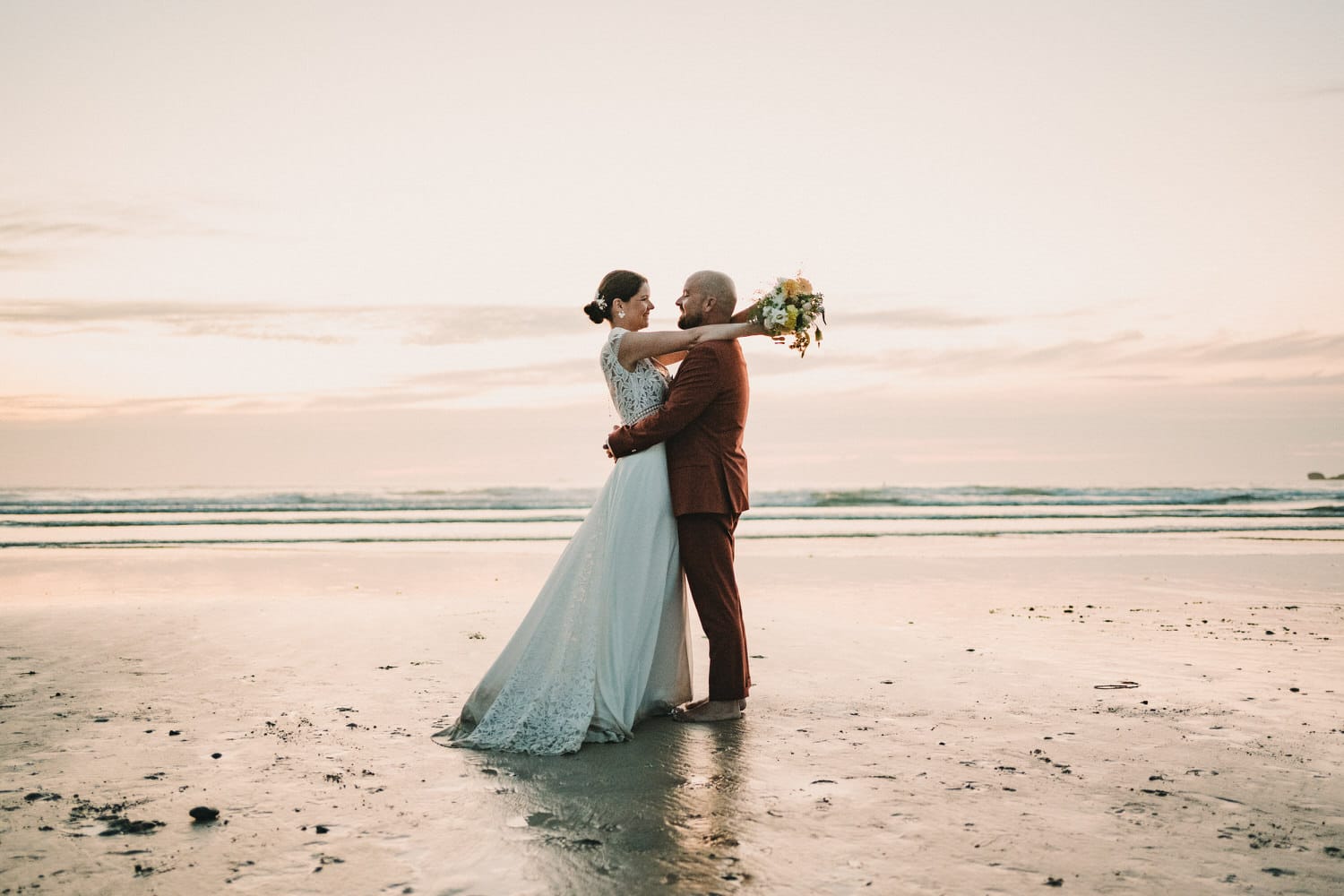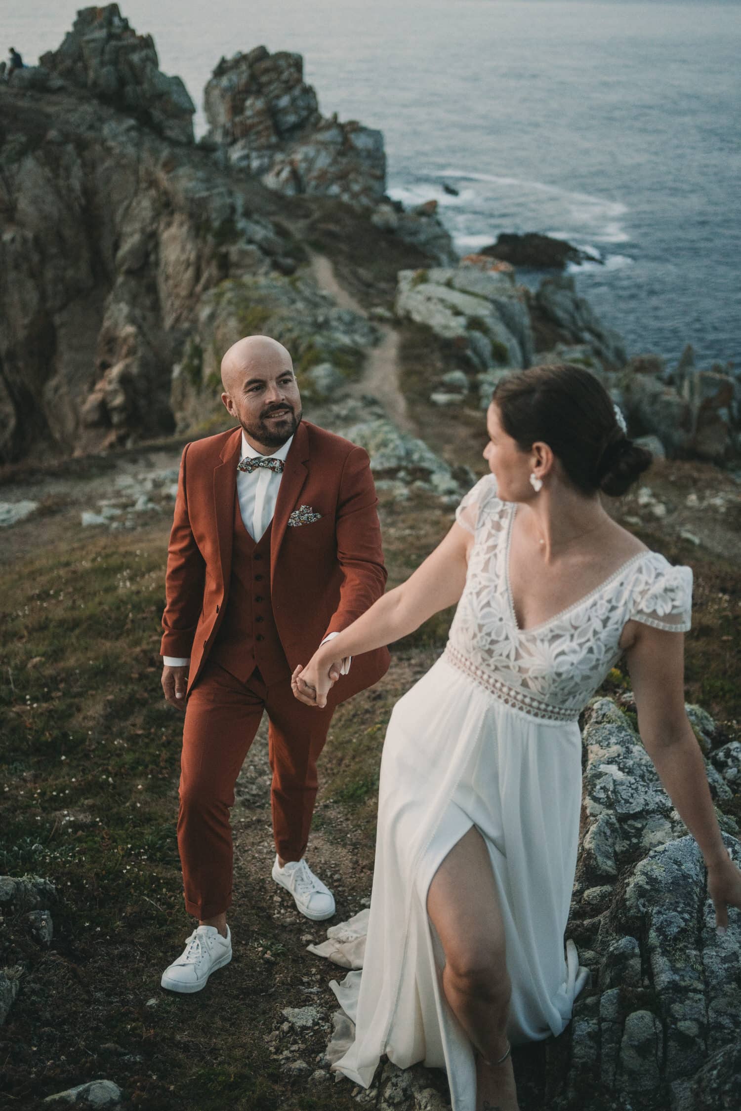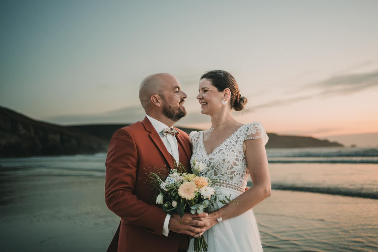 En tant que photographe de mariage basé à Quimper, je propose aussi une option séance photo de mariés sur la côte, et cela même pour les mariés pour qui je n’ai pas couvert le mariage. Ces séances se déroulent généralement sur la côte ou dans la forêt en Bretagne, du printemps à l’automne. La plupart des mariés choisissent de la réaliser la semaine qui suit le mariage. Pour cela, nous partons sur des spots incroyables et inédits au coucher du soleil. Ces séances sont bien souvent épiques et les photos produites sont toujours imprimés en grand format par les mariés qui l’accrochent sur le mur de leur salon.