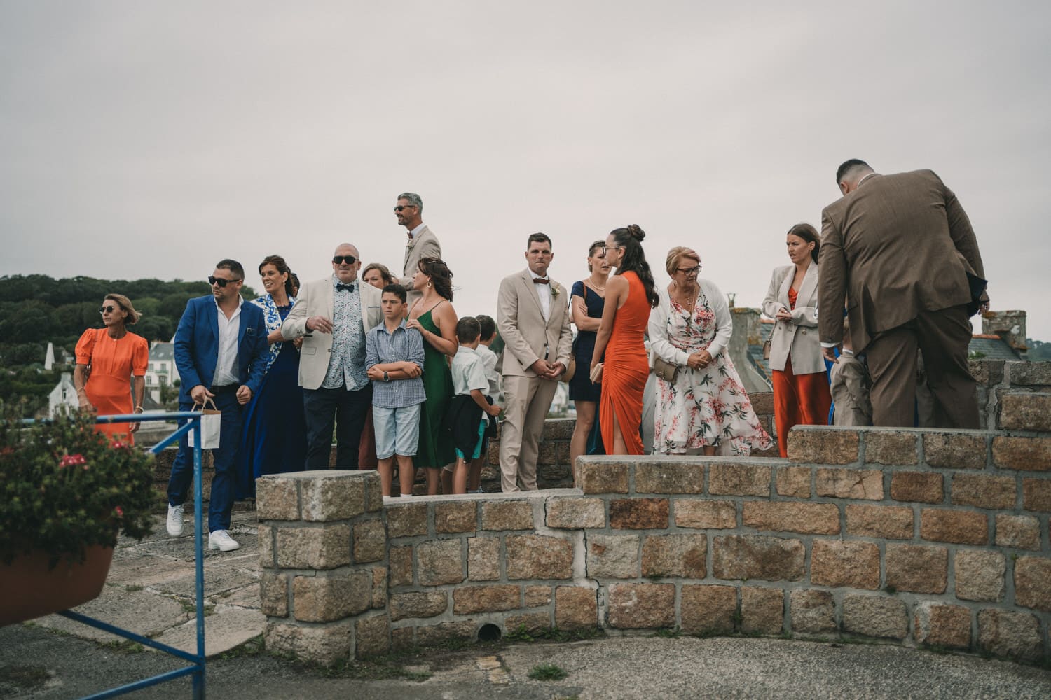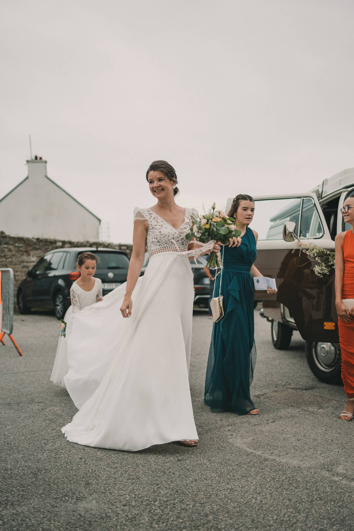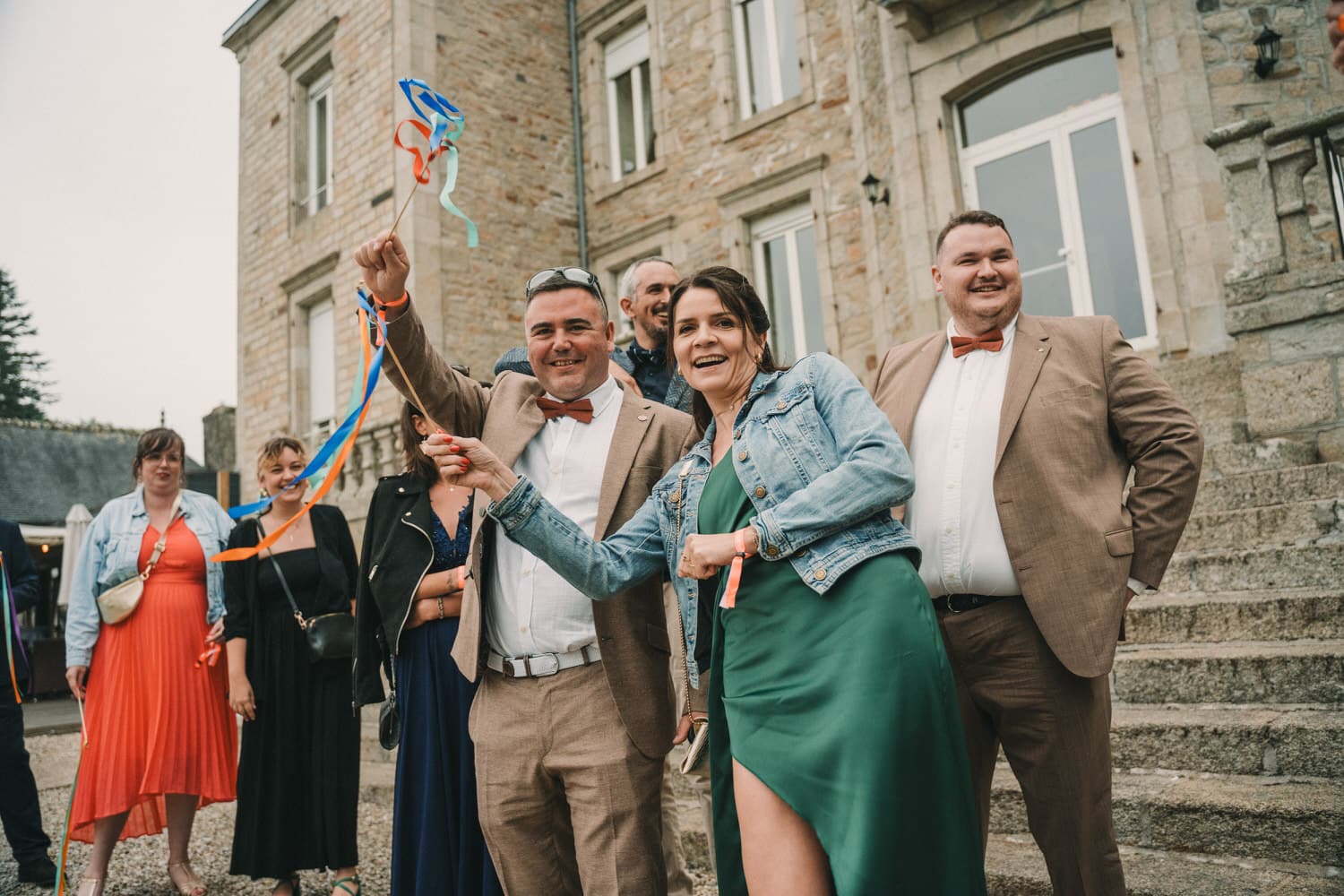 Tout avait pourtant bien commencé niveau météo, jusqu’à la sortie de l’église à Audierne, où le temps à commencé à se dégrader. Mais rien qui puisse mettre un frein à l’euphorie de la journée et la motivation de nos mariés et de leurs invités qui ont continué avec un cocktail dynamique au son du saxophone. Et comme il ne pleut jamais toute une journée de mariage et que ça se découvre toujours au cocktail, nous avons pu réaliser toutes les photos avec la famille et les proches en extérieur (et heureusement), le jeu des rubans, et autres animations en plein air.
