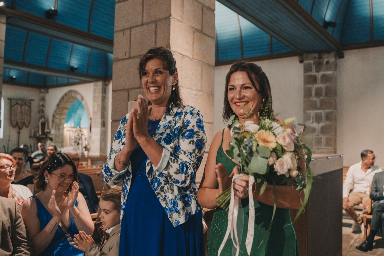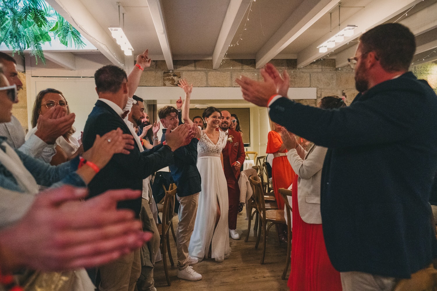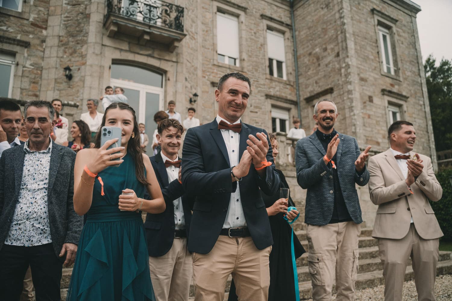 Tout avait pourtant bien commencé niveau météo, jusqu’à la sortie de l’église à Audierne, où le temps à commencé à se dégrader. Mais rien qui puisse mettre un frein à l’euphorie de la journée et la motivation de nos mariés et de leurs invités qui ont continué avec un cocktail dynamique au son du saxophone. Et comme il ne pleut jamais toute une journée de mariage et que ça se découvre toujours au cocktail, nous avons pu réaliser toutes les photos avec la famille et les proches en extérieur (et heureusement), le jeu des rubans, et autres animations en plein air.